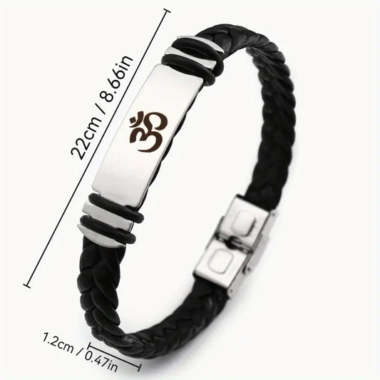 Fashion Stainless Steel Braided Leather Bracelet with Om Symbol