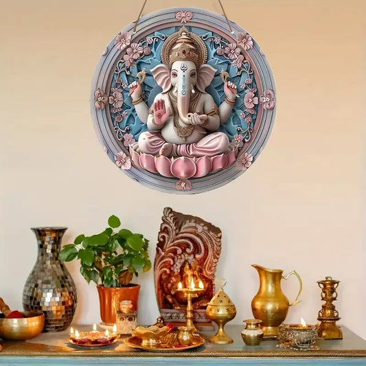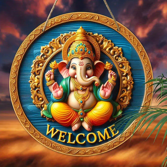 1pc Ganesha Welcome Round Aluminum Metal Sign