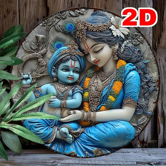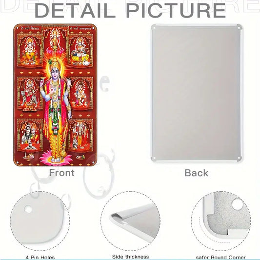 Hindu Gods Wall Plaque, Metal Iron Decorative Plate with Vishnu, Krishna, Ganesha, Shiva, Saraswati Rama And Durga