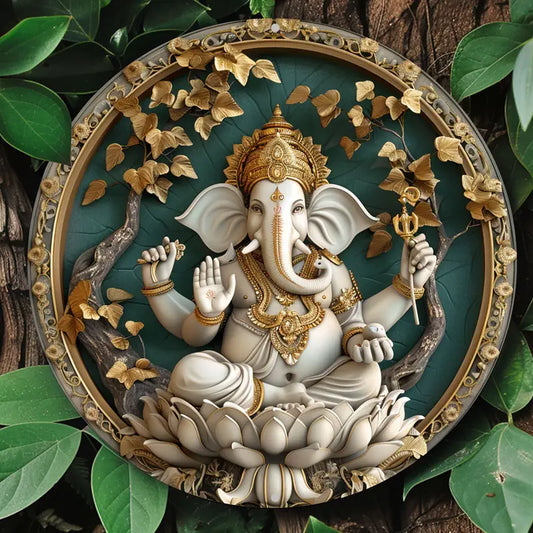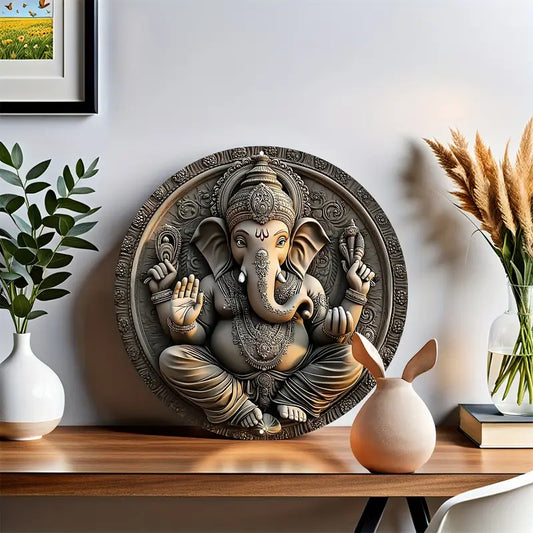 1pc 8x8inch Ganesha Aluminum Classic Style Decorative Round Plaque Wall Hanging Sign