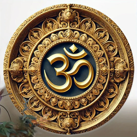 Golden Om Symbol 7.8x7.8" Aluminum Sign