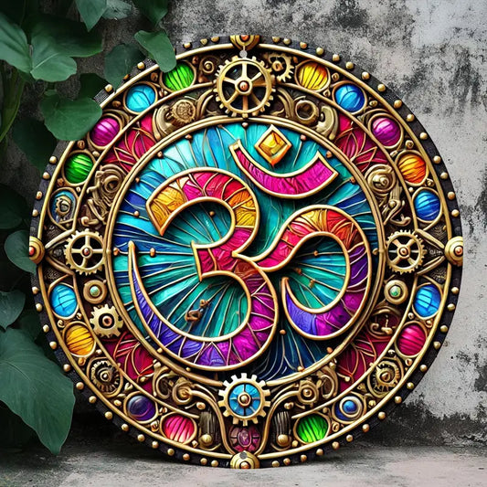 Vintage Steampunk Om Symbol Aluminum Wall Art