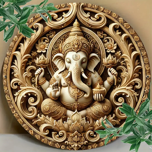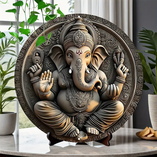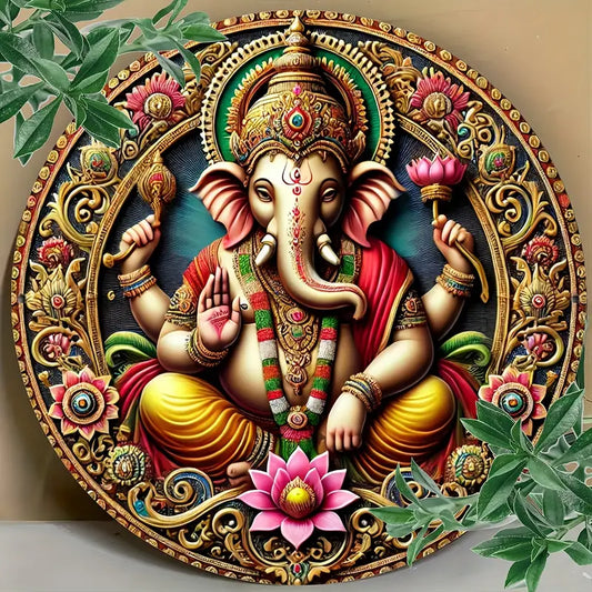 8"x8" Vintage Aluminium Ganesha Wall Art