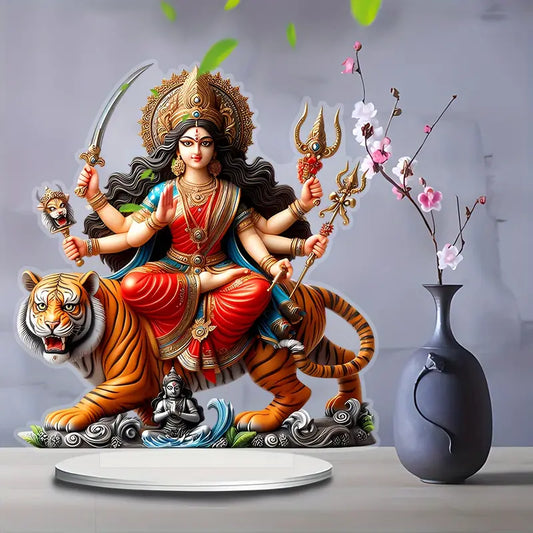 1pc Art Deco Acrylic Goddess Durga Statue with Lion Base