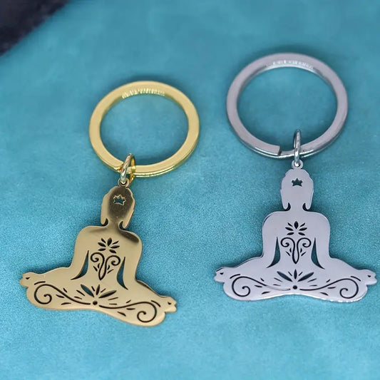 Stainless Steel Keychain with Buddhist Meditation Pendant