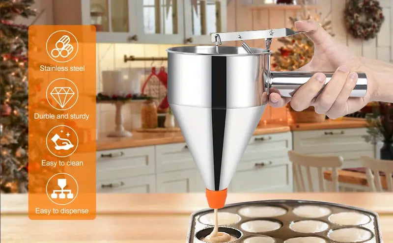 Sel Roti Maker! 1.2L Set of Batter Dispenser with Holder, Funnel for making Nepali Sel Rotis, Cupcakes, Tarts & Desserts, Essential Baking Tools for Home Kitchen